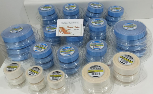 A fita adesiva é uma opção popular para fixar próteses capilares porque é fácil de aplicar e oferece uma fixação forte e duradoura.